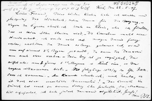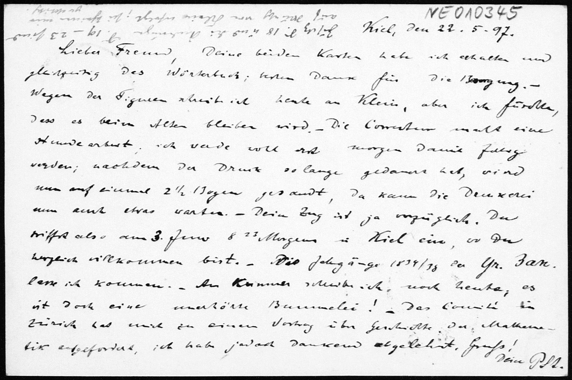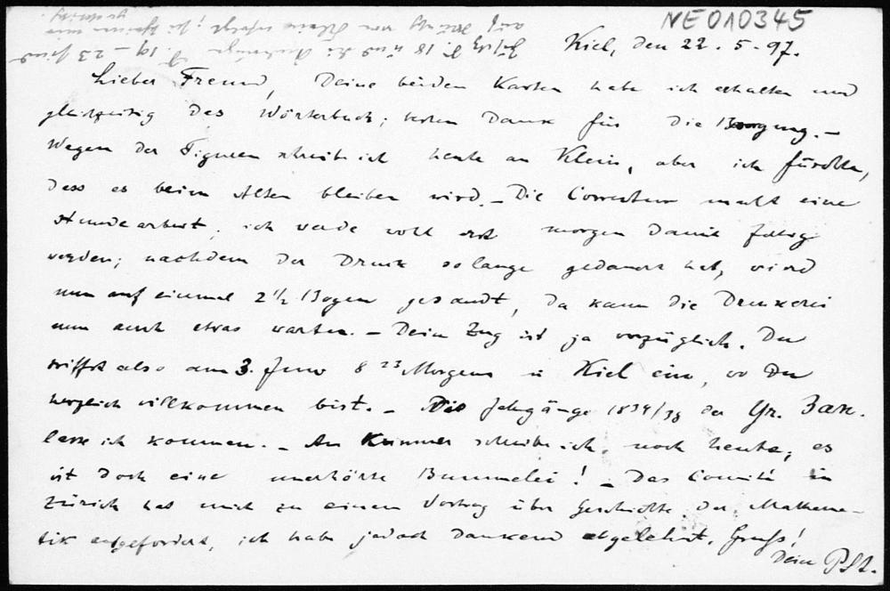 Postkarte von Paul Stäckel an Friedrich Engel vom 22.5.1897