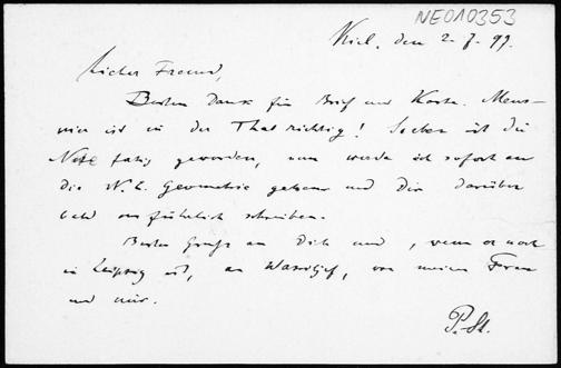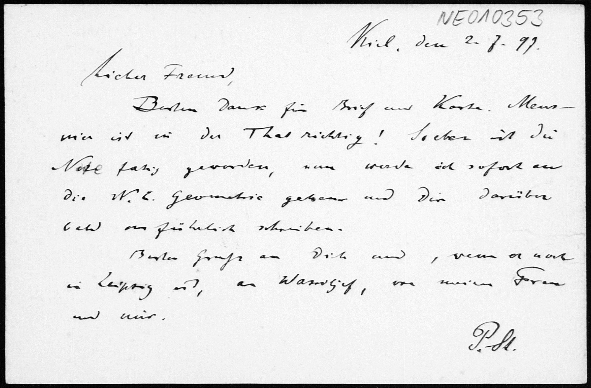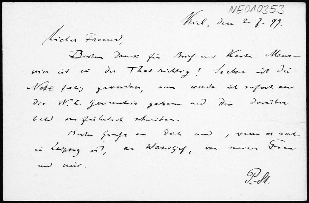 Postkarte von Paul Stäckel an Friedrich Engel vom 2.7.1897