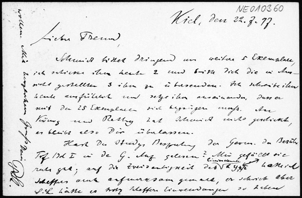 Postkarte von Paul Stäckel an Friedrich Engel vom 22.7.1897