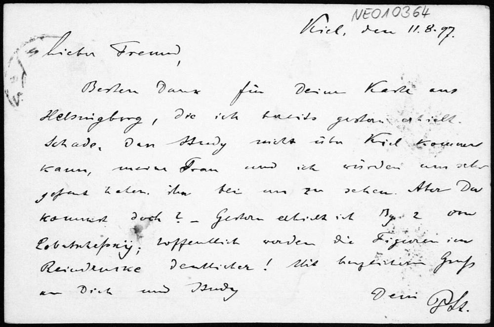 Postkarte von Paul Stäckel an Friedrich Engel vom 11.8.1897