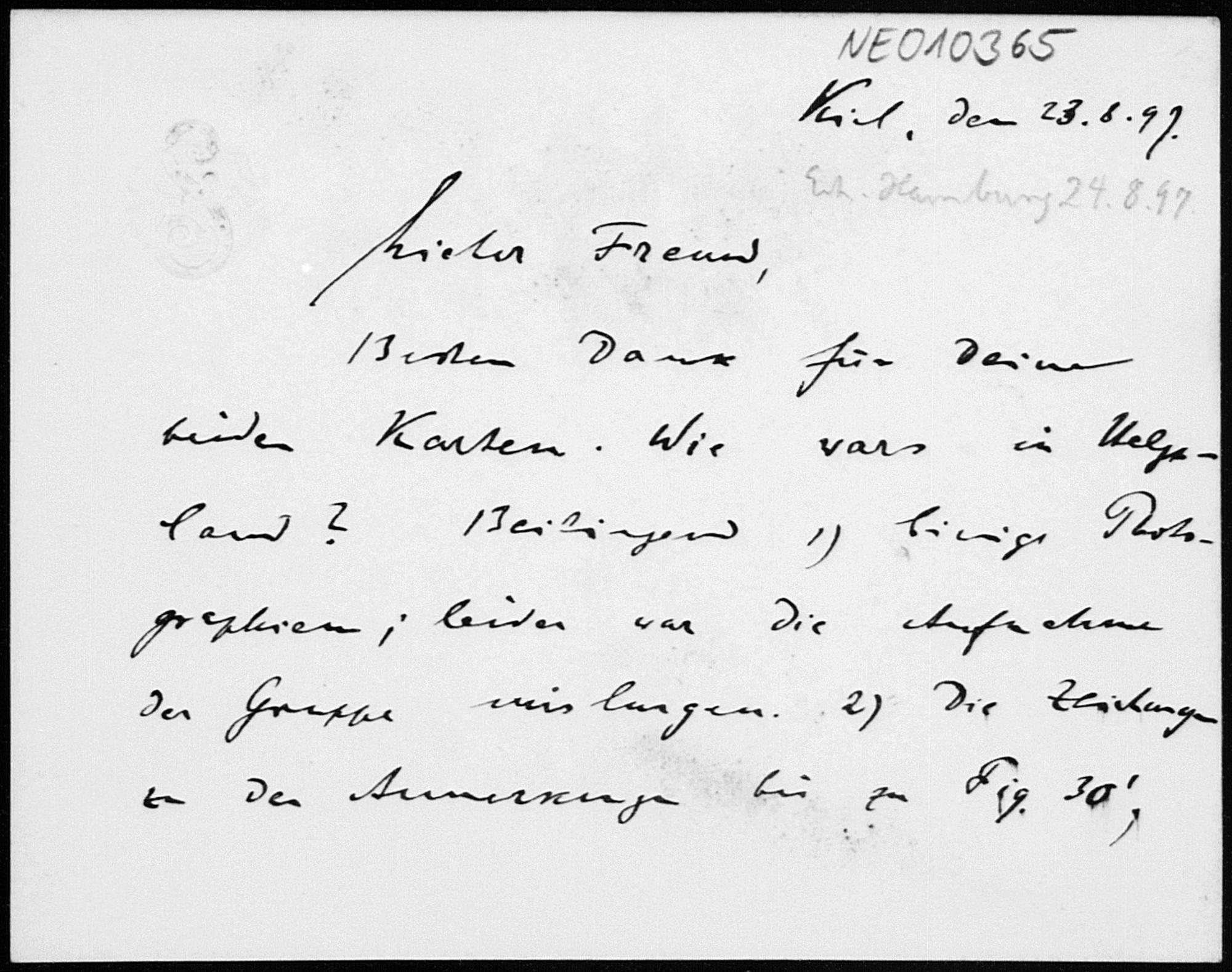 Briefkarte von Paul Stäckel an Friedrich Engel vom 23.8.1897