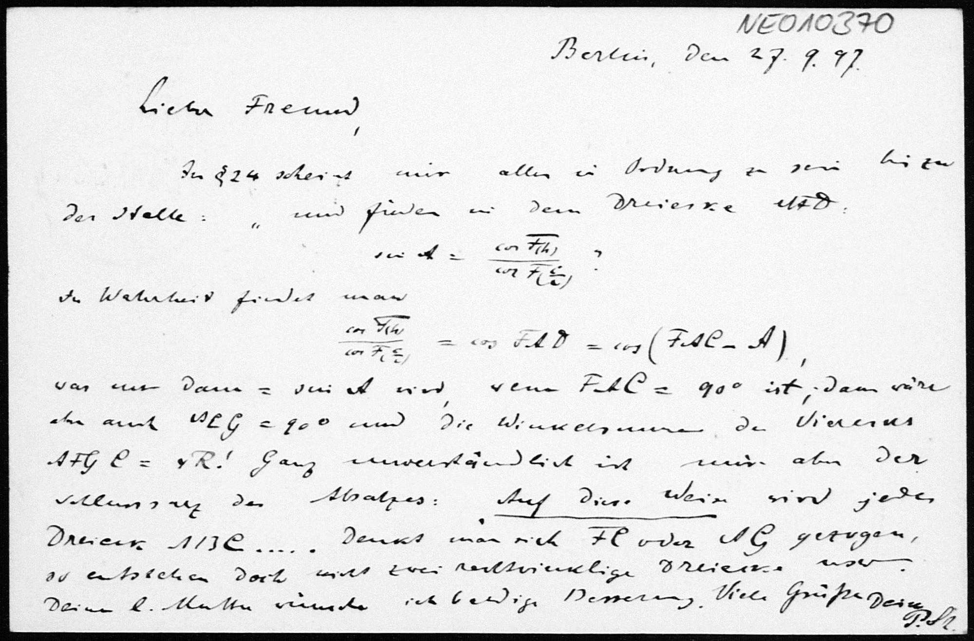 Postkarte von Paul Stäckel an Friedrich Engel vom 27.9.1897