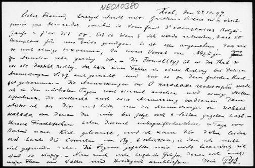 Postkarte von Paul Stäckel an Friedrich Engel vom 24.10.1897