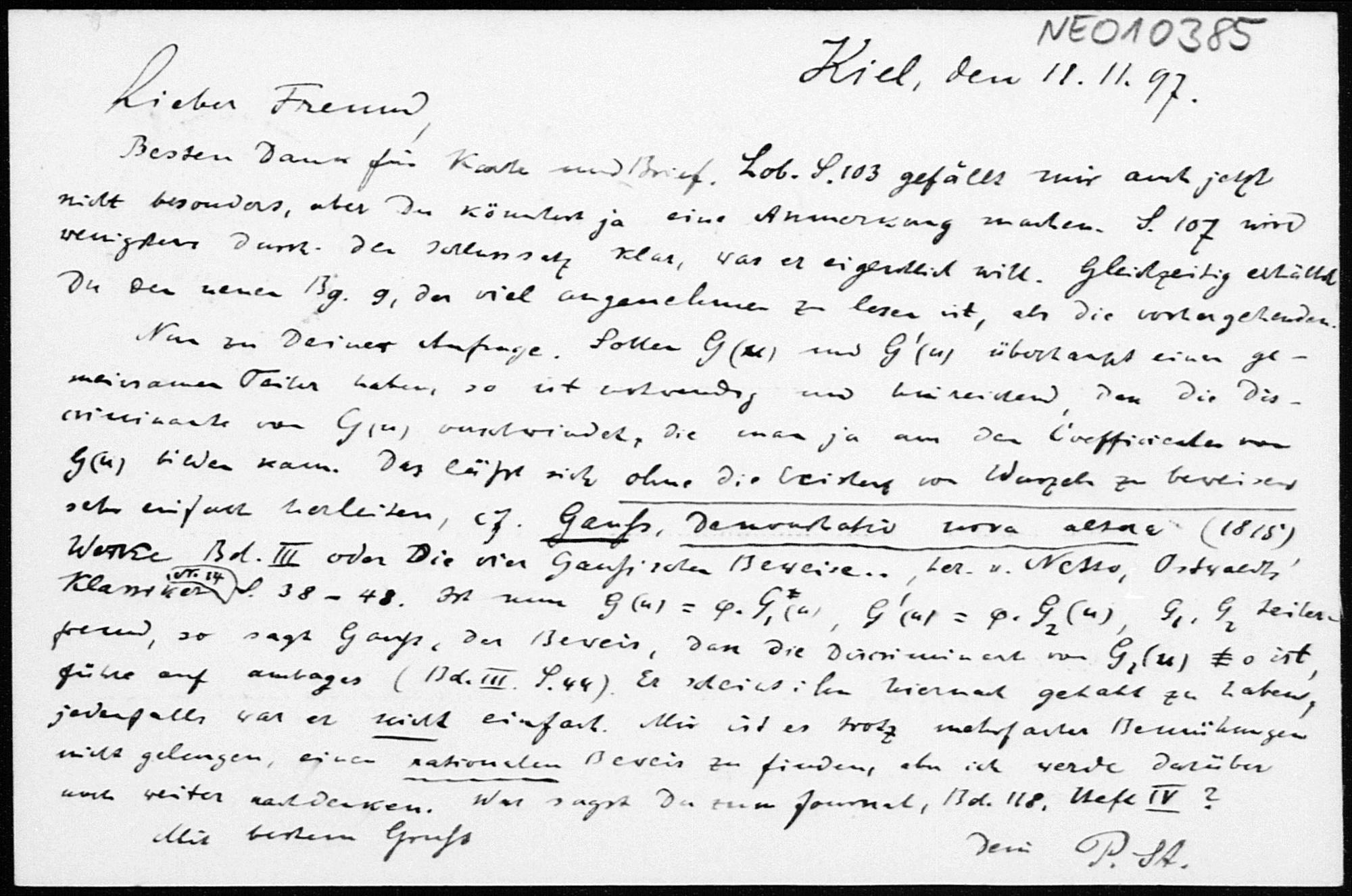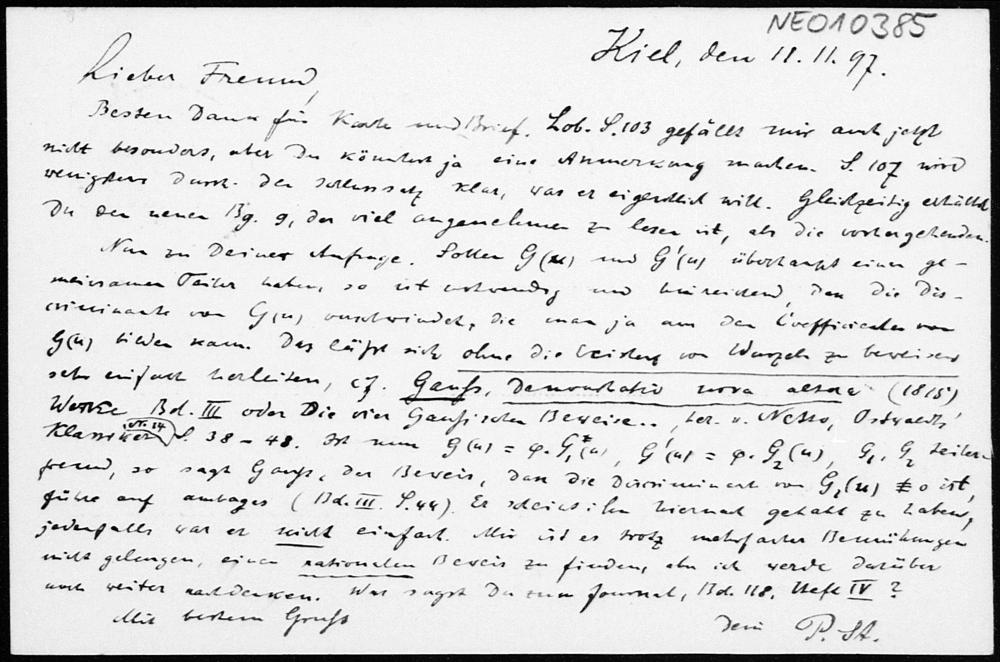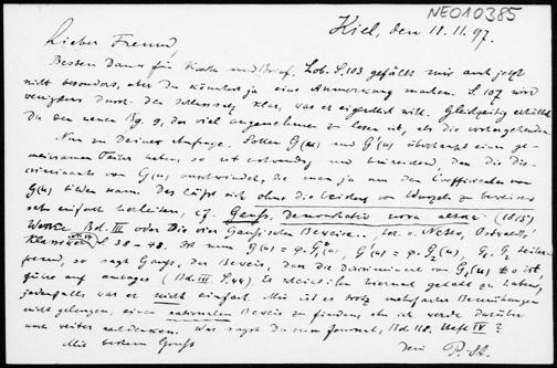 Postkarte von Paul Stäckel an Friedrich Engel vom 11.11.1897