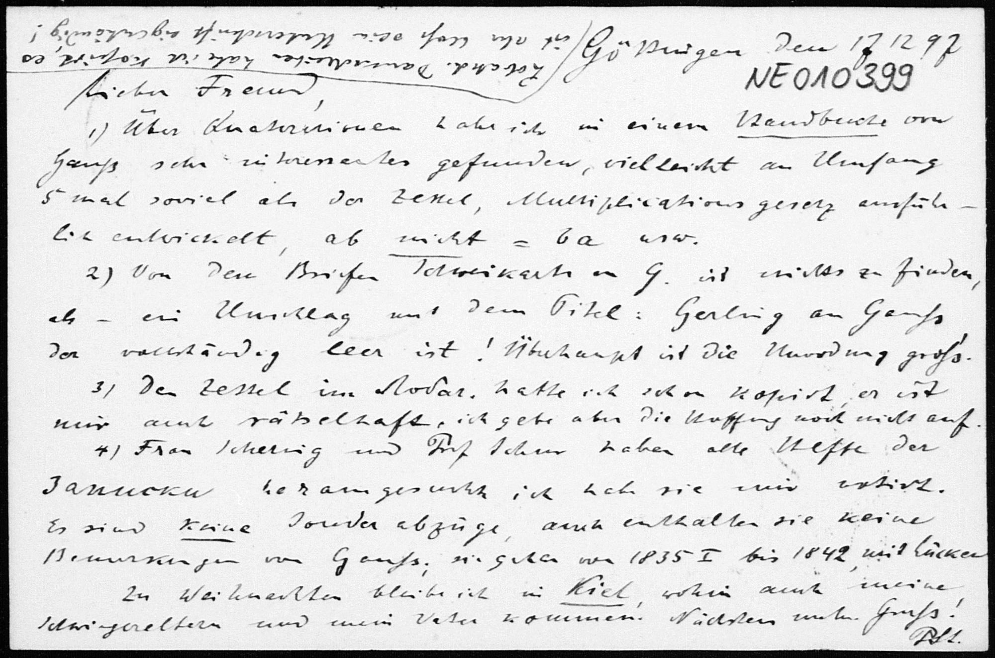 Postkarte von Paul Stäckel an Friedrich Engel vom 17.12.1897