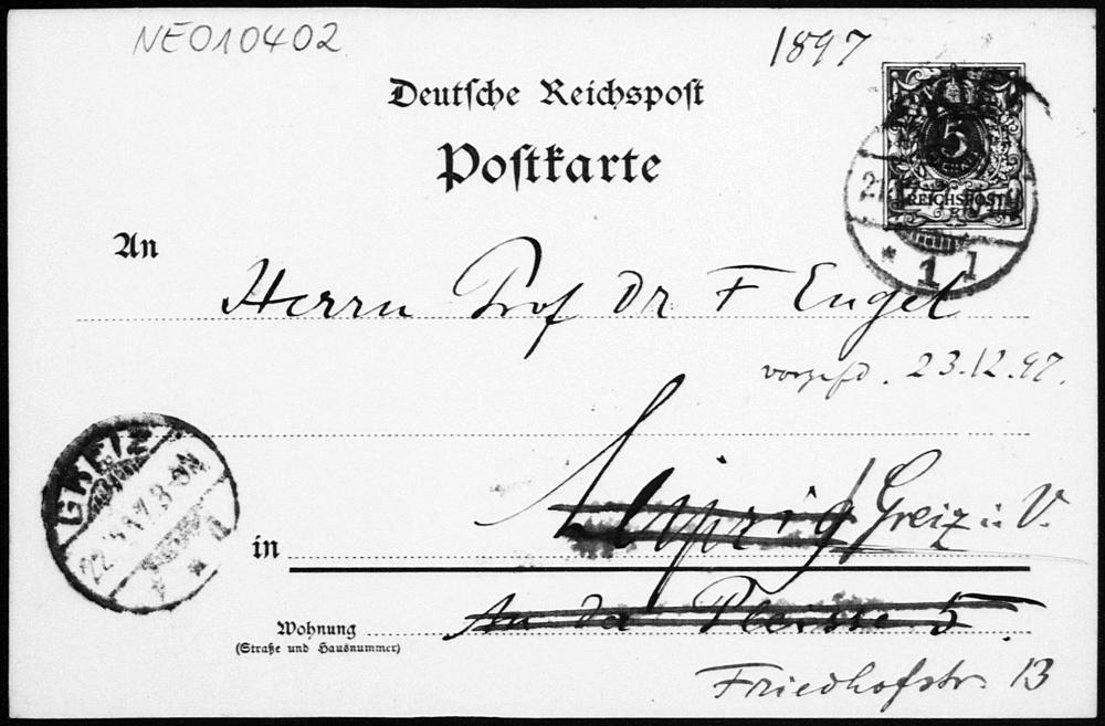 Postkarte von Paul Stäckel an Friedrich Engel vom 21.12.1897