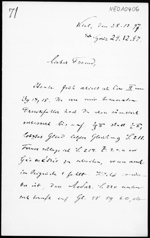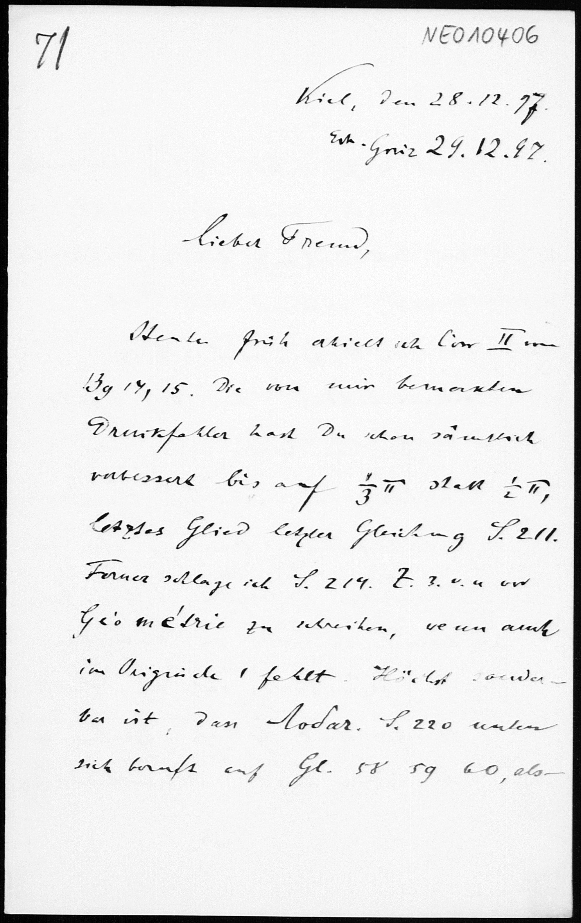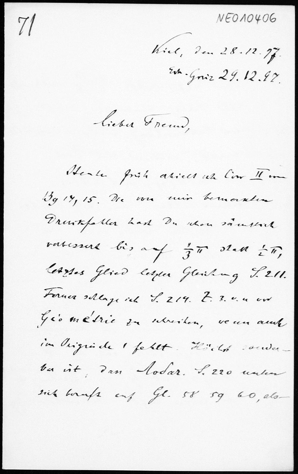 Brief von Paul Stäckel an Friedrich Engel vom 28.12.1897