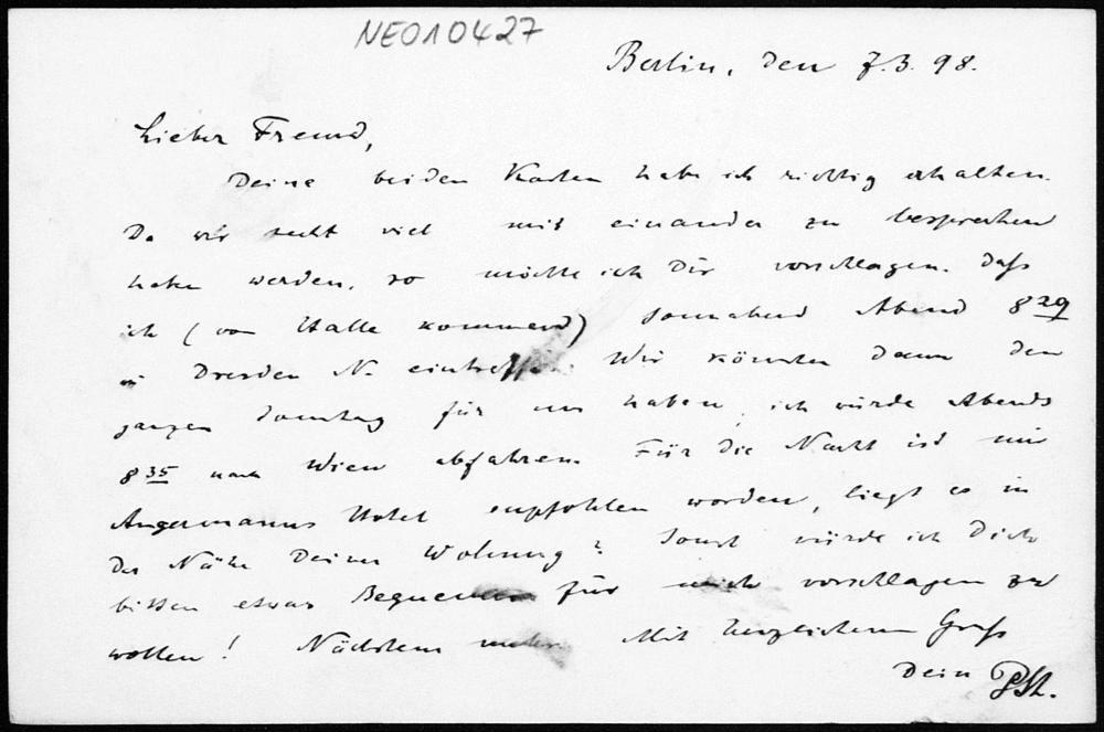 Postkarte von Paul Stäckel an Friedrich Engel vom 7.3.1898