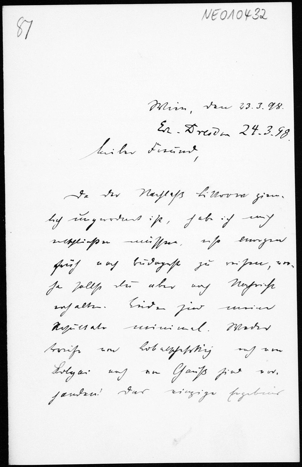 Brief von Paul Stäckel an Friedrich Engel vom 23.3.1898
