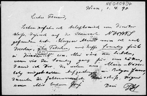 Postkarte von Paul Stäckel an Friedrich Engel vom 1.4.1898
