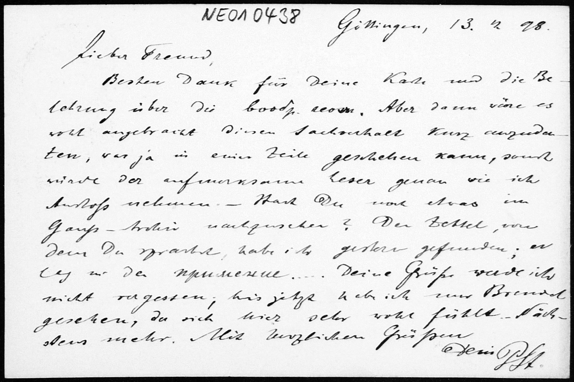 Postkarte von Paul Stäckel an Friedrich Engel vom 13.4.1898