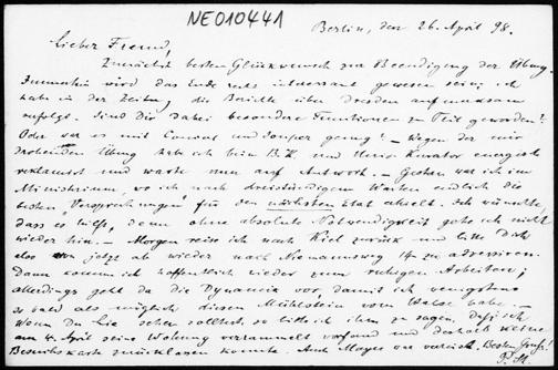 Postkarte von Paul Stäckel an Friedrich Engel vom 26.4.1898