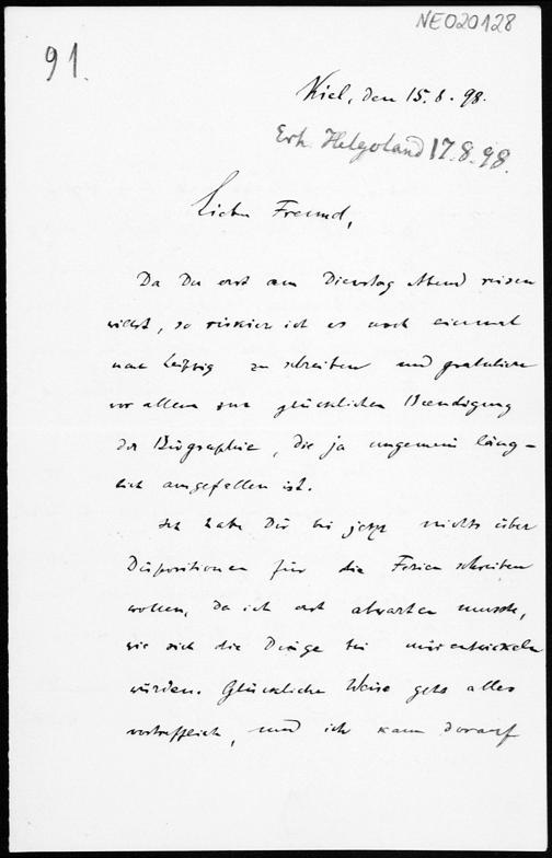 Brief von Paul Stäckel an Friedrich Engel vom 15.8.1898