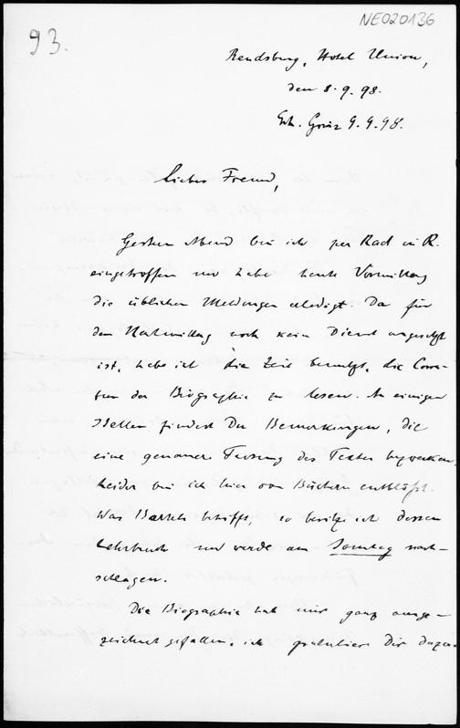 Brief von Paul Stäckel an Friedrich Engel vom 8.9.1898
