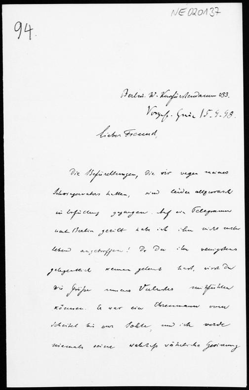 Brief von Paul Stäckel an Friedrich Engel vom ??.9.1898
