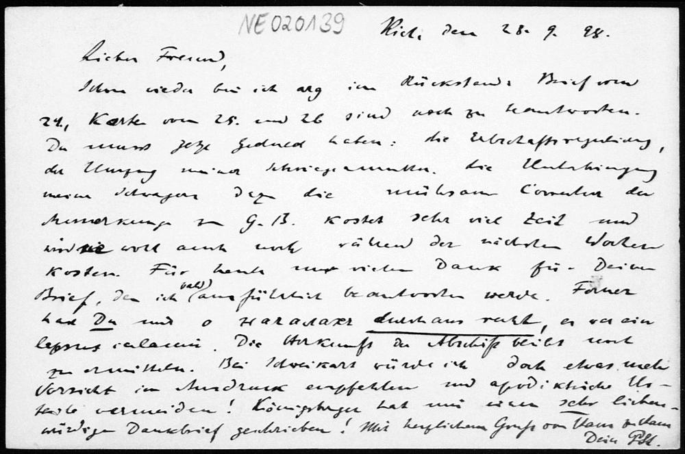 Postkarte von Paul Stäckel an Friedrich Engel vom 28.9.1898