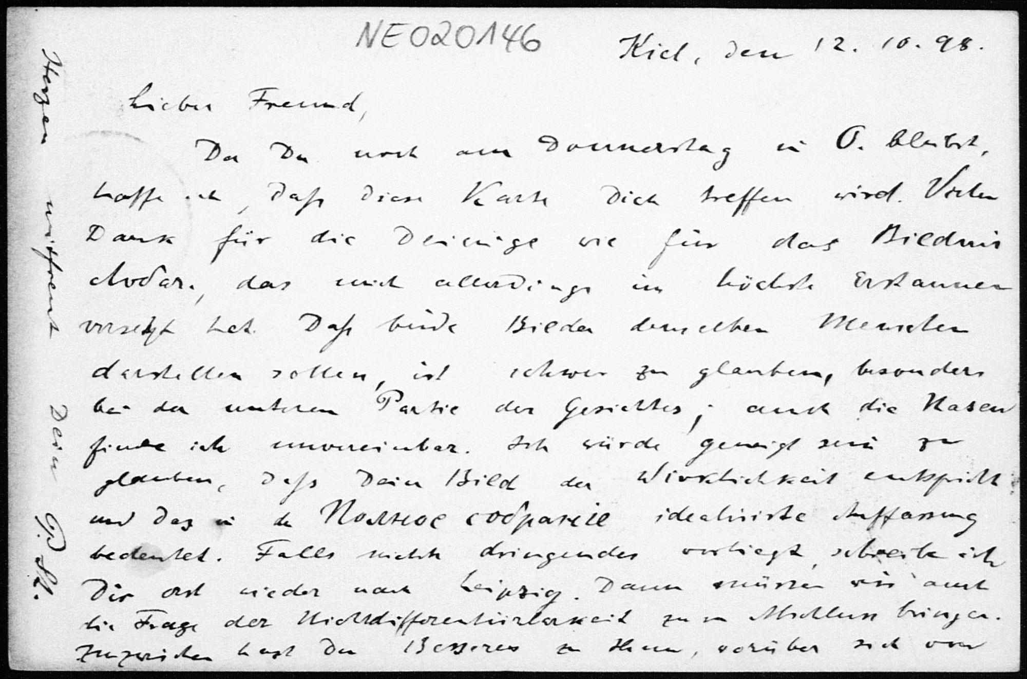 Postkarte von Paul Stäckel an Friedrich Engel vom 12.10.1898