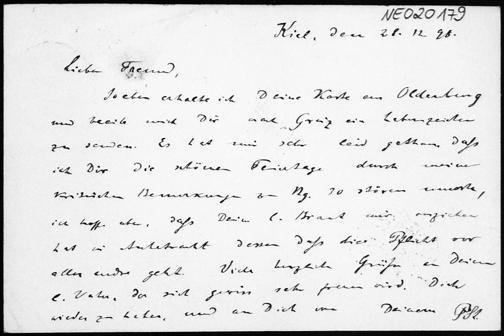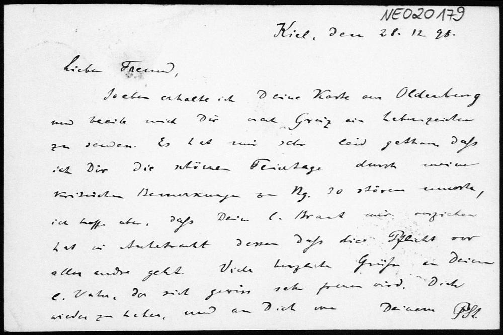 Postkarte von Paul Stäckel an Friedrich Engel vom 28.12.1898