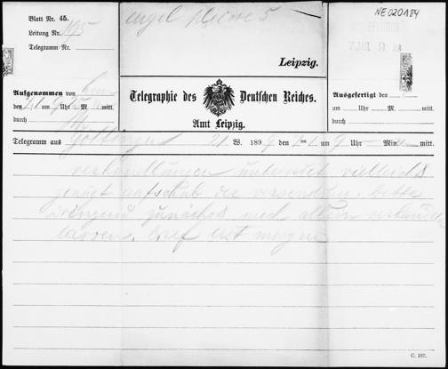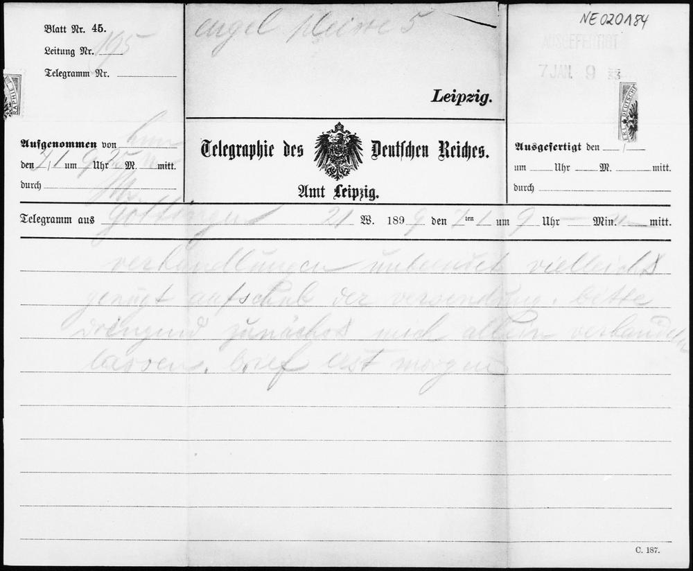 Telegramm von Paul Stäckel an Friedrich Engel vom 7.1.1899