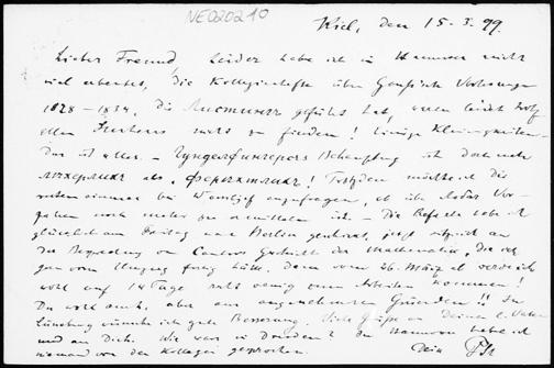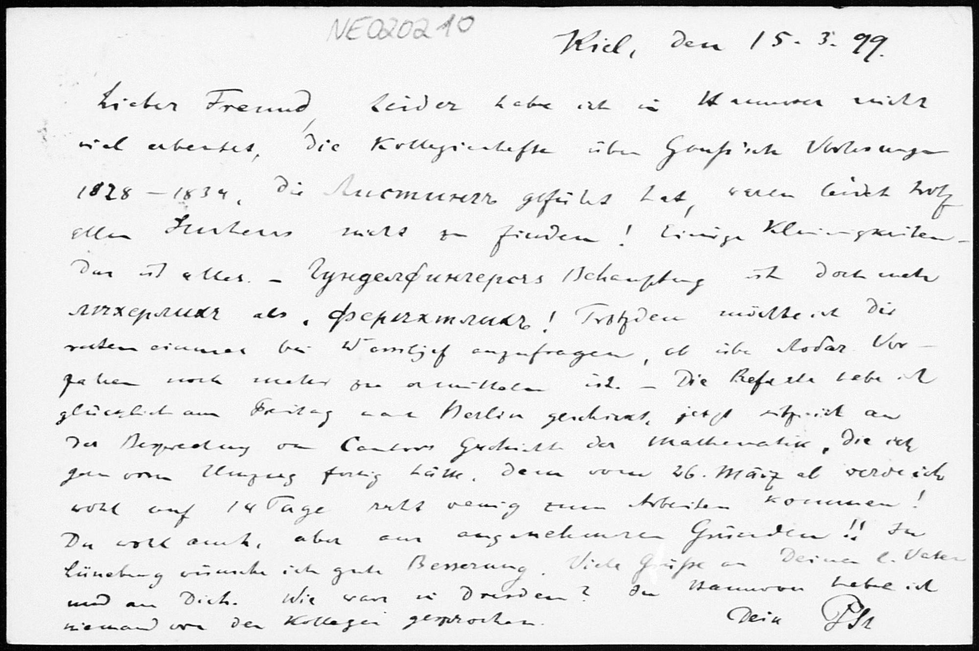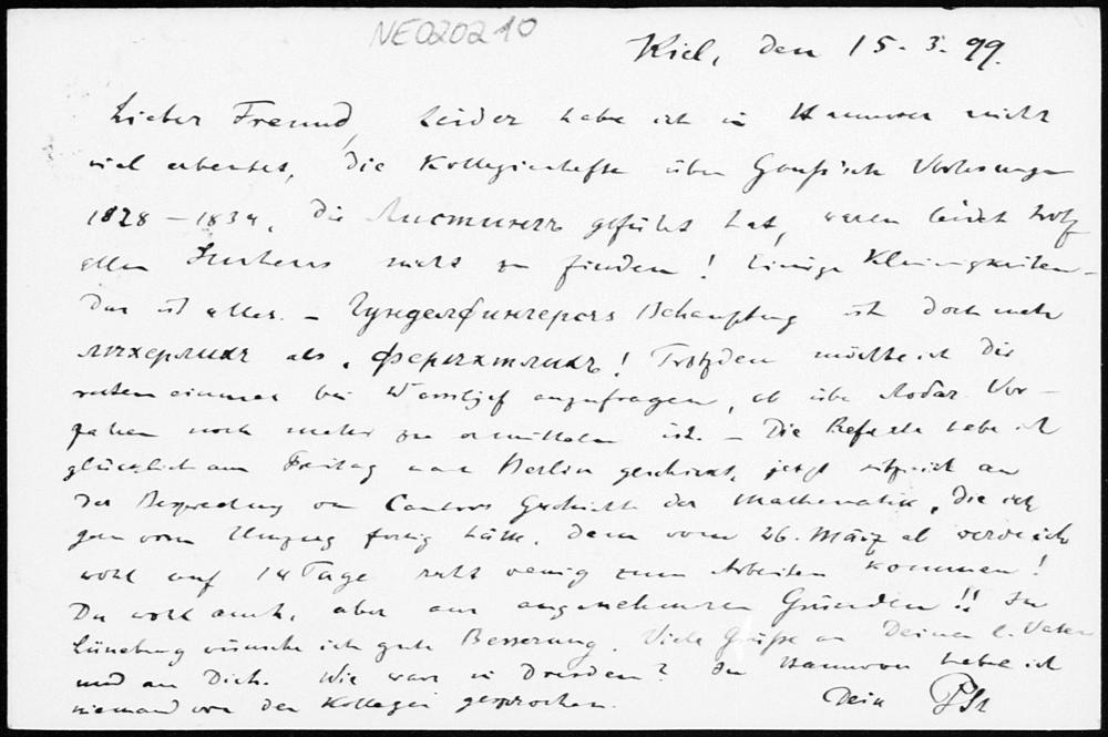Postkarte von Paul Stäckel an Friedrich Engel vom 15.3.1899
