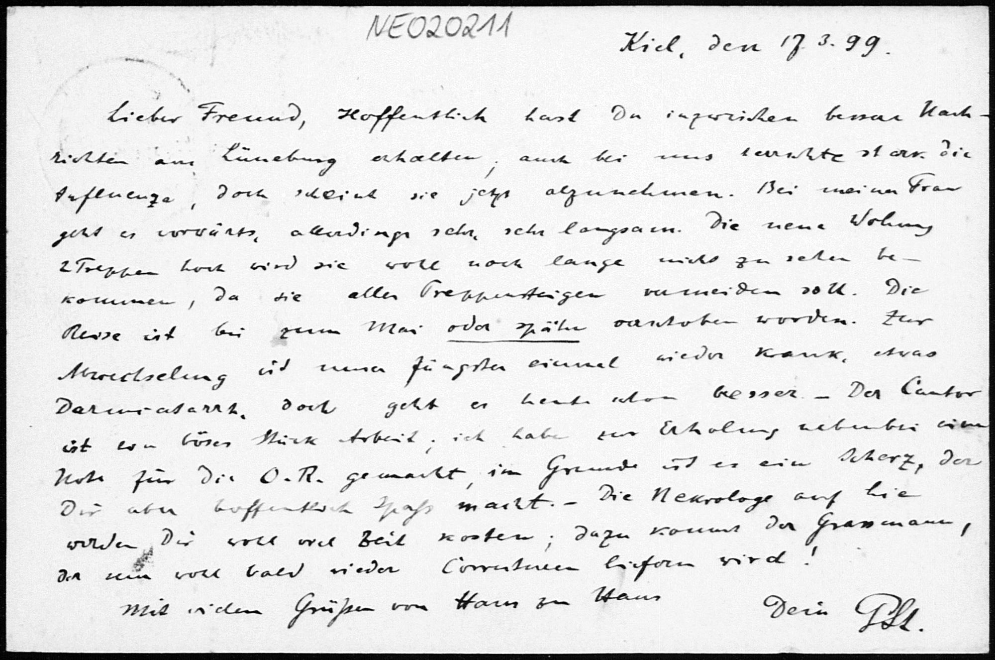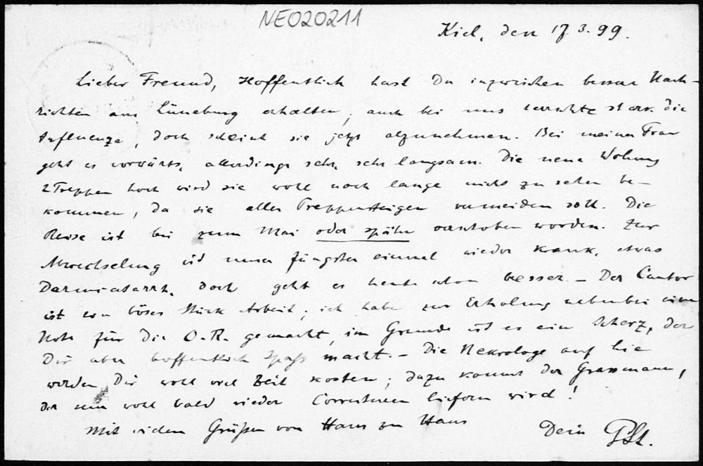 Postkarte von Paul Stäckel an Friedrich Engel vom 17.3.1899