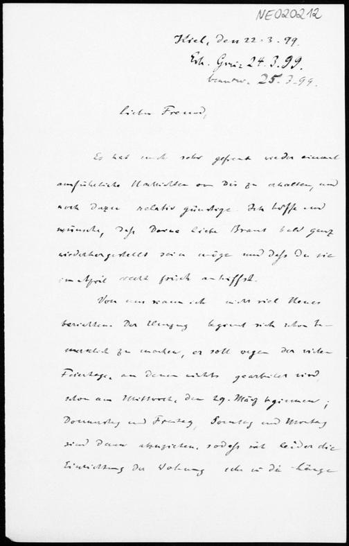 Brief von Paul Stäckel an Friedrich Engel vom 22.3.1899