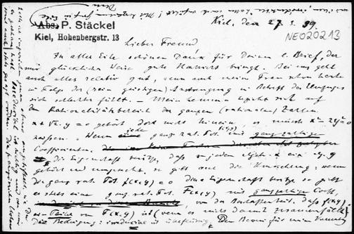 Postkarte von Paul Stäckel an Friedrich Engel vom 27.3.1899