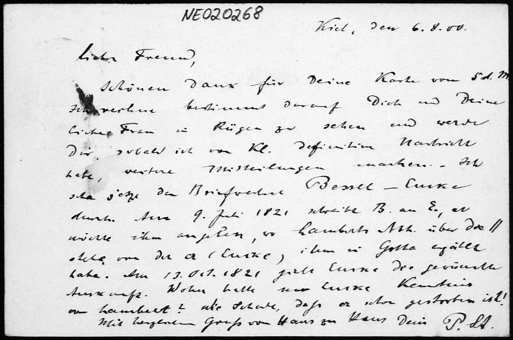 Postkarte von Paul Stäckel an Friedrich Engel vom 6.8.1900