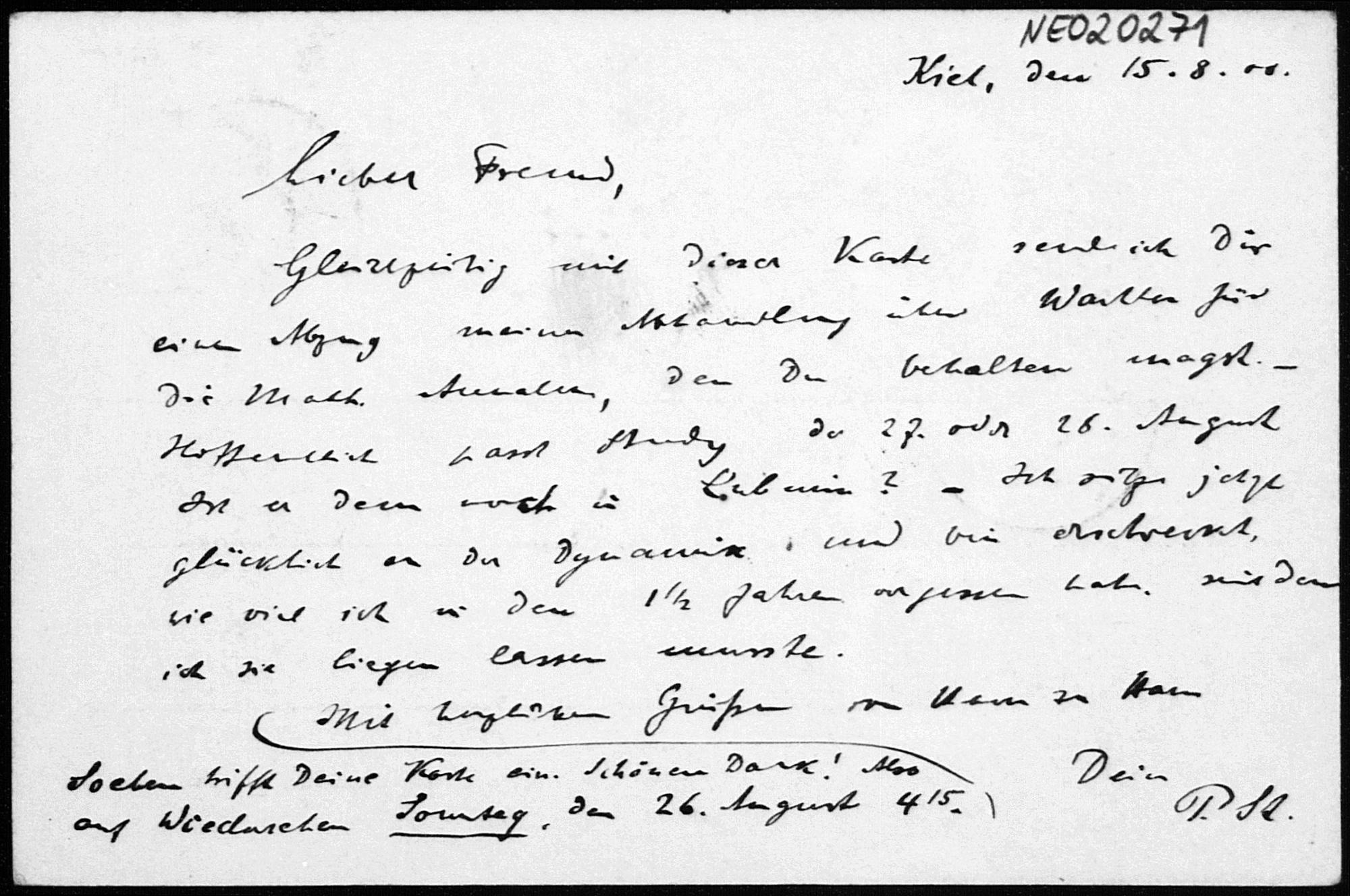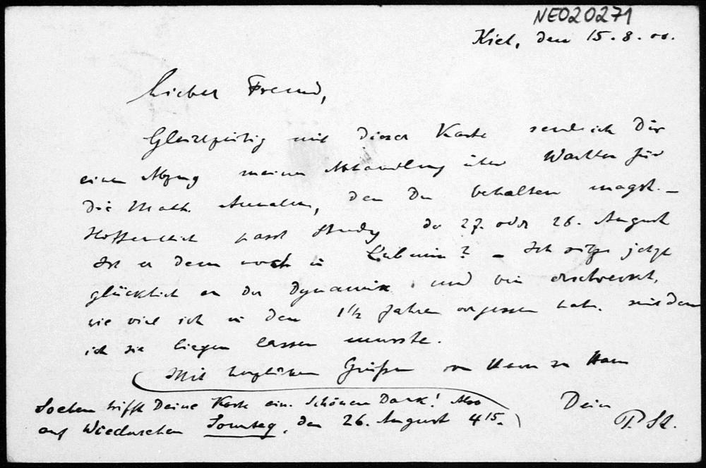 Postkarte von Paul Stäckel an Friedrich Engel vom 15.8.1900
