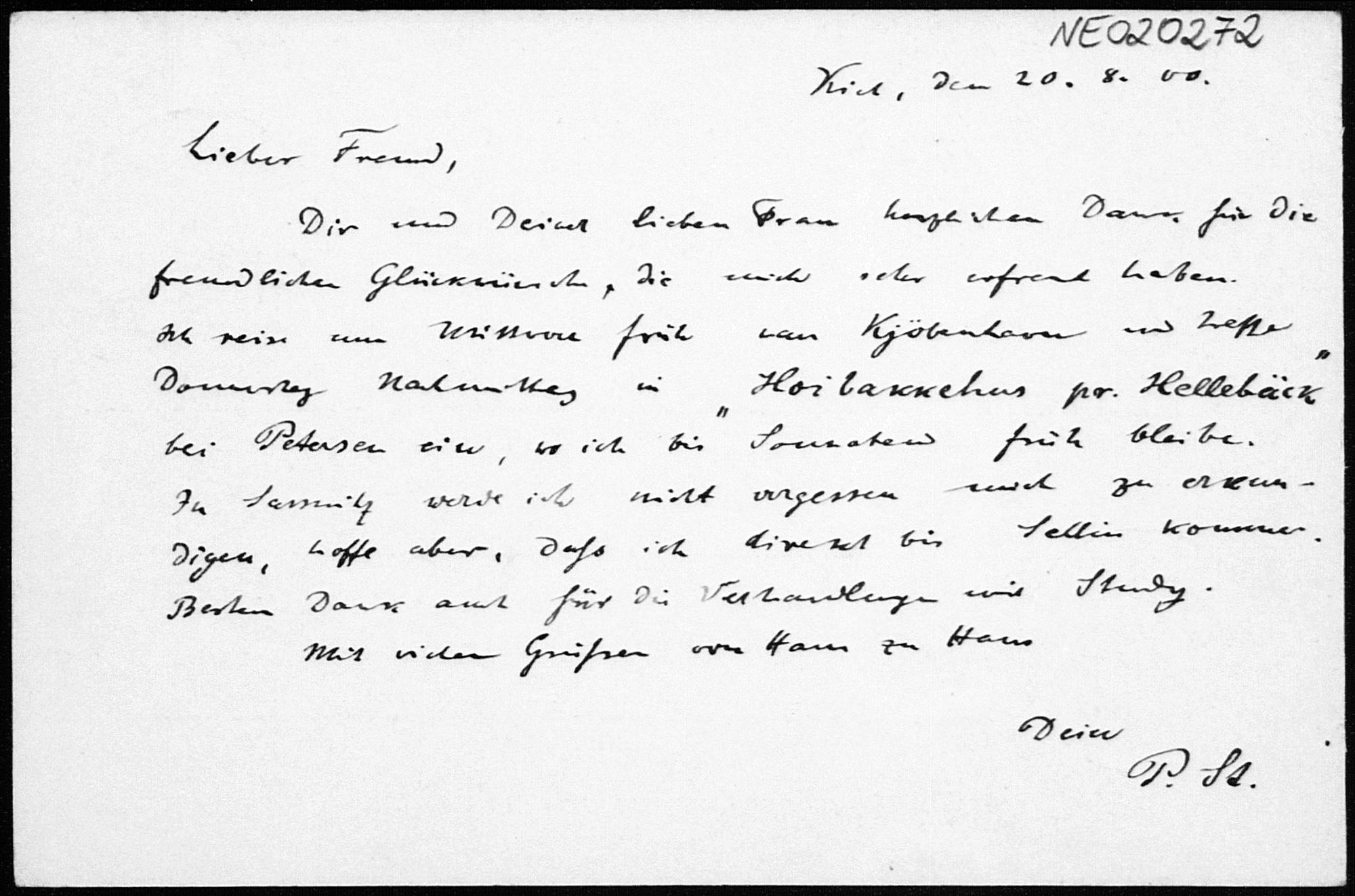 Postkarte von Paul Stäckel an Friedrich Engel vom 20.8.1900