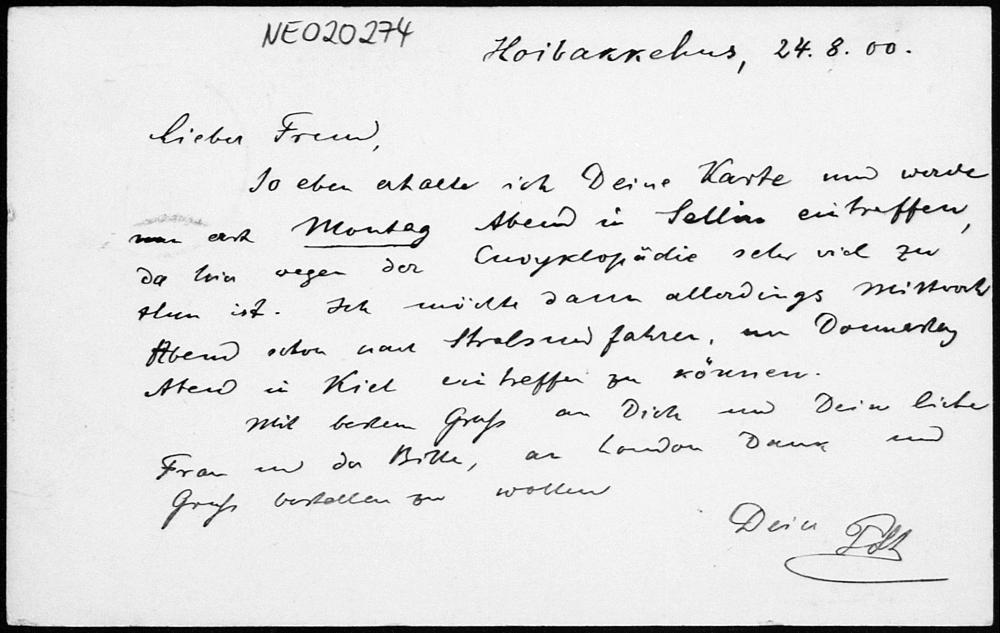 Postkarte von Paul Stäckel an Friedrich Engel vom 24.8.1900