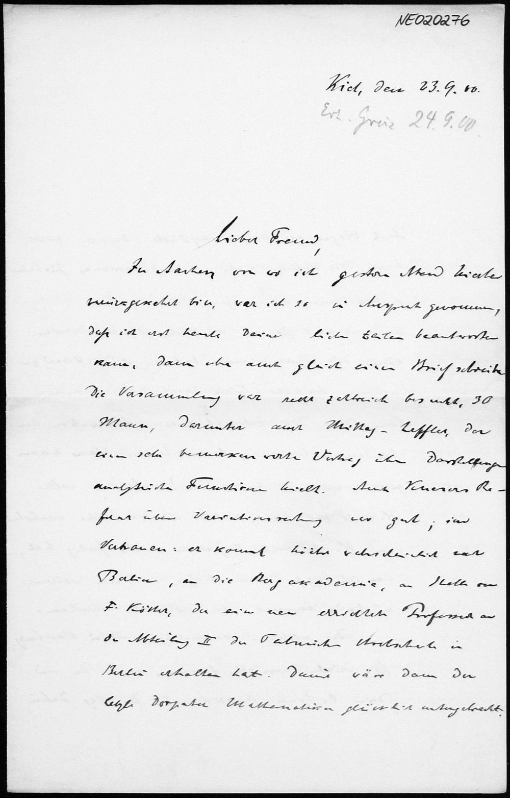 Brief von Paul Stäckel an Friedrich Engel vom 23.9.1900