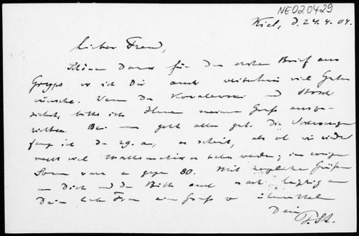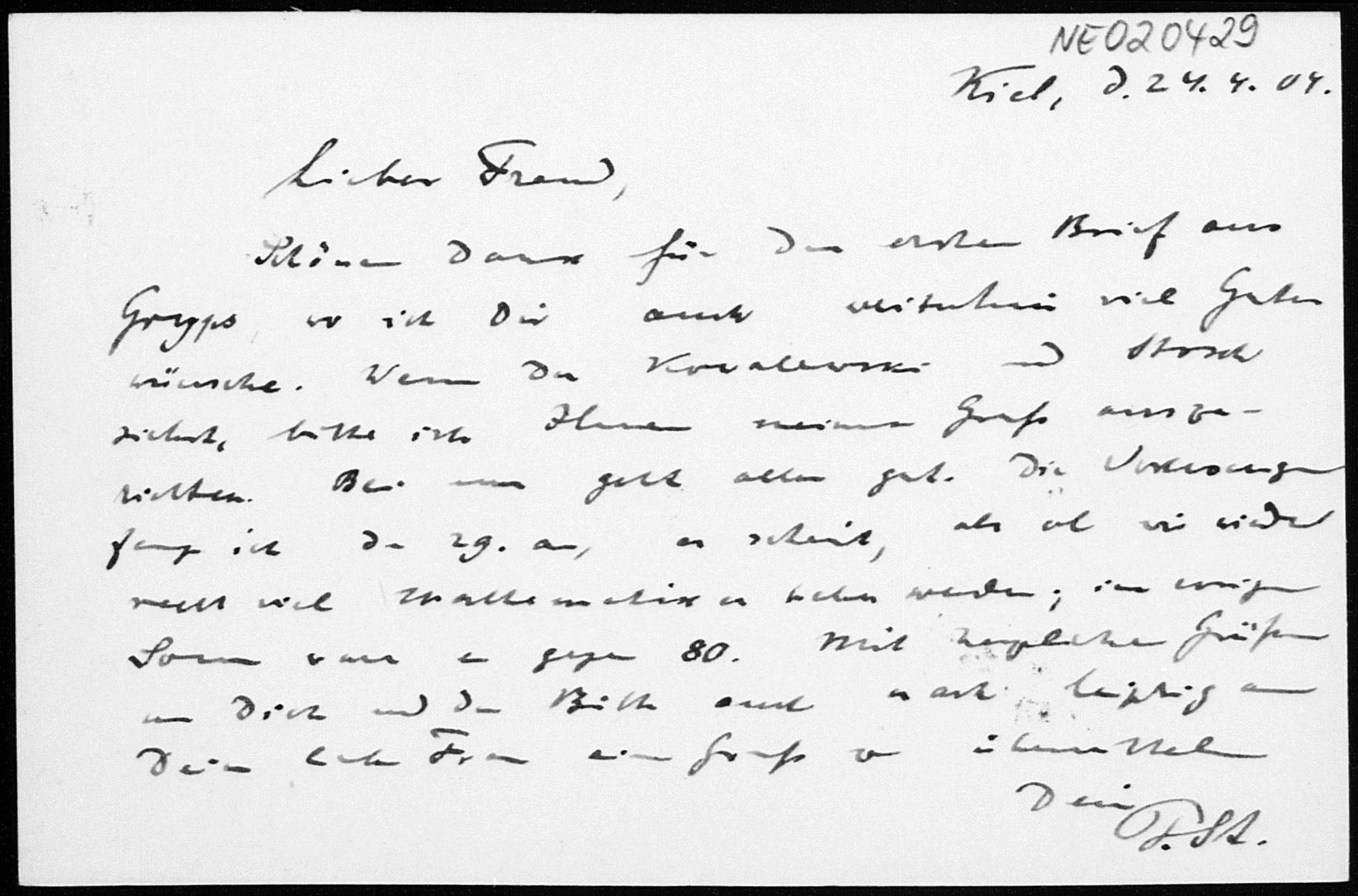 Postkarte von Paul Stäckel an Friedrich Engel vom 24.4.1904