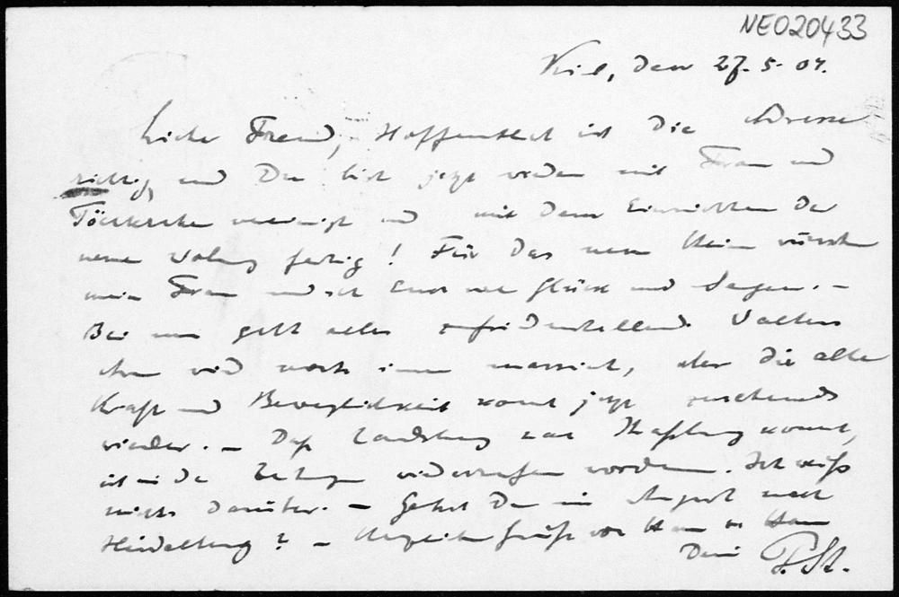 Postkarte von Paul Stäckel an Friedrich Engel vom 27.5.1904