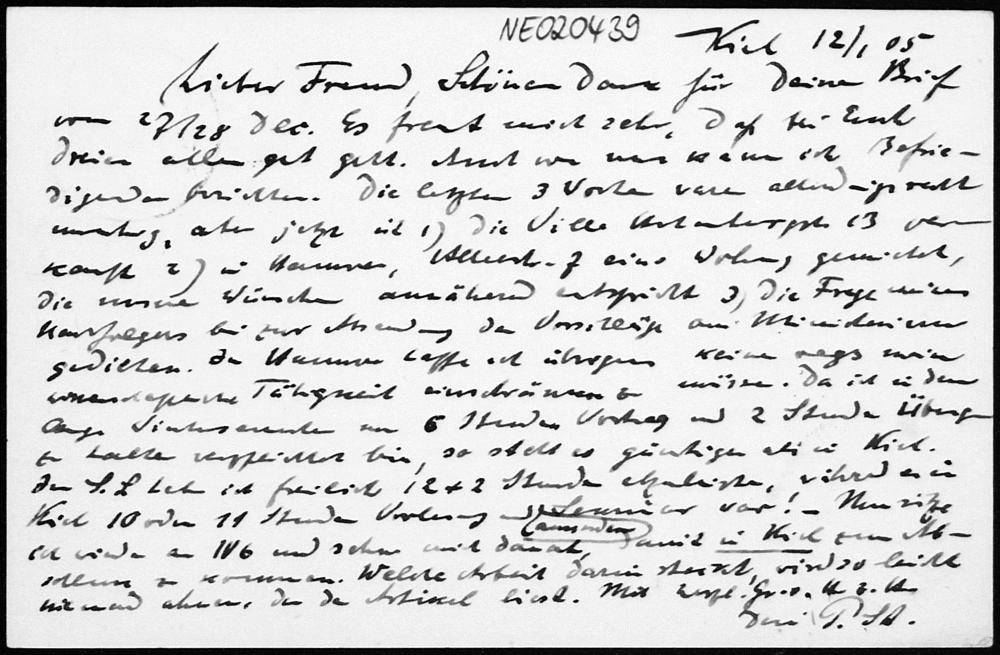Postkarte von Paul Stäckel an Friedrich Engel vom 12.1.1905