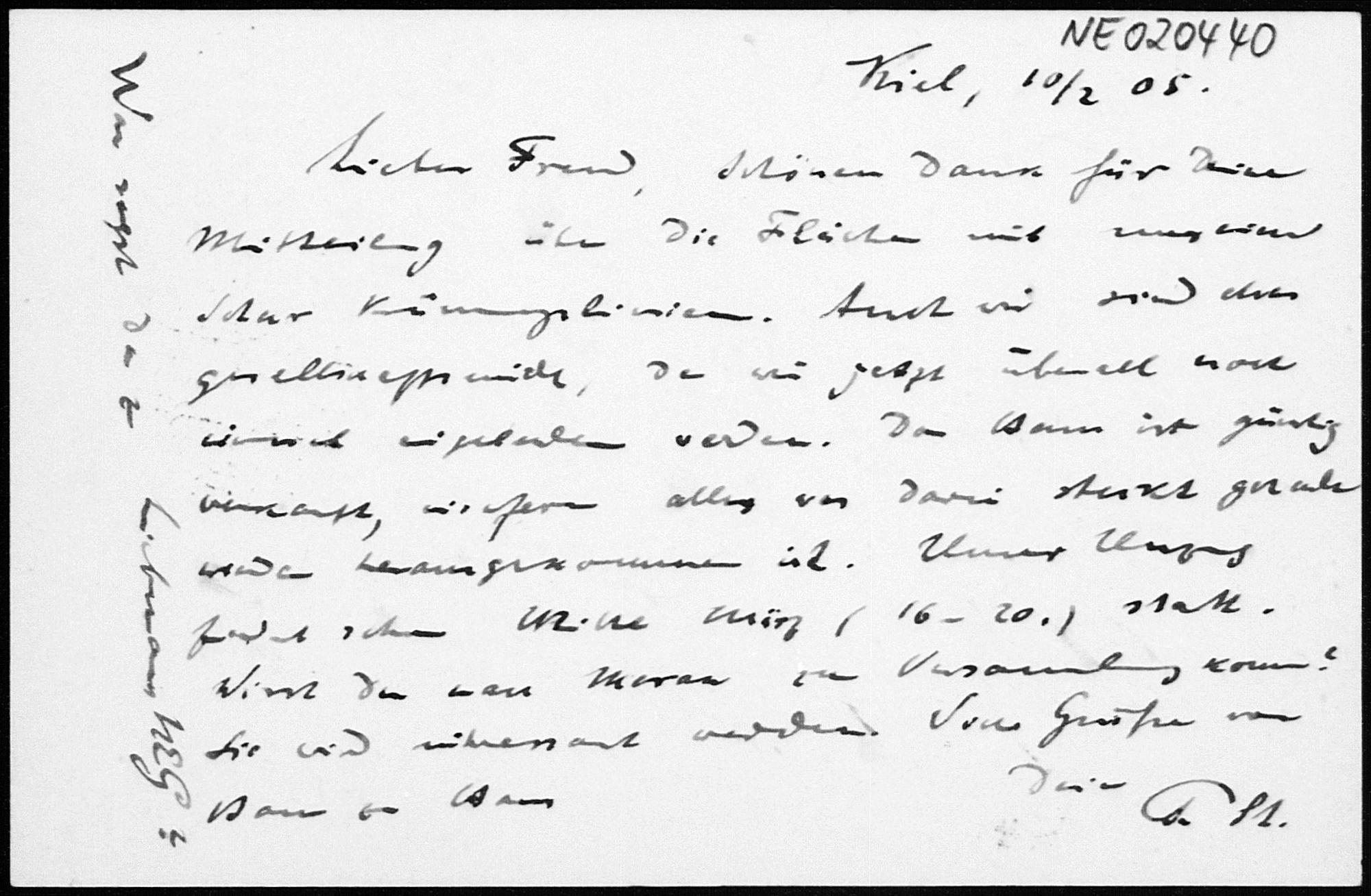Postkarte von Paul Stäckel an Friedrich Engel vom 10.2.1905