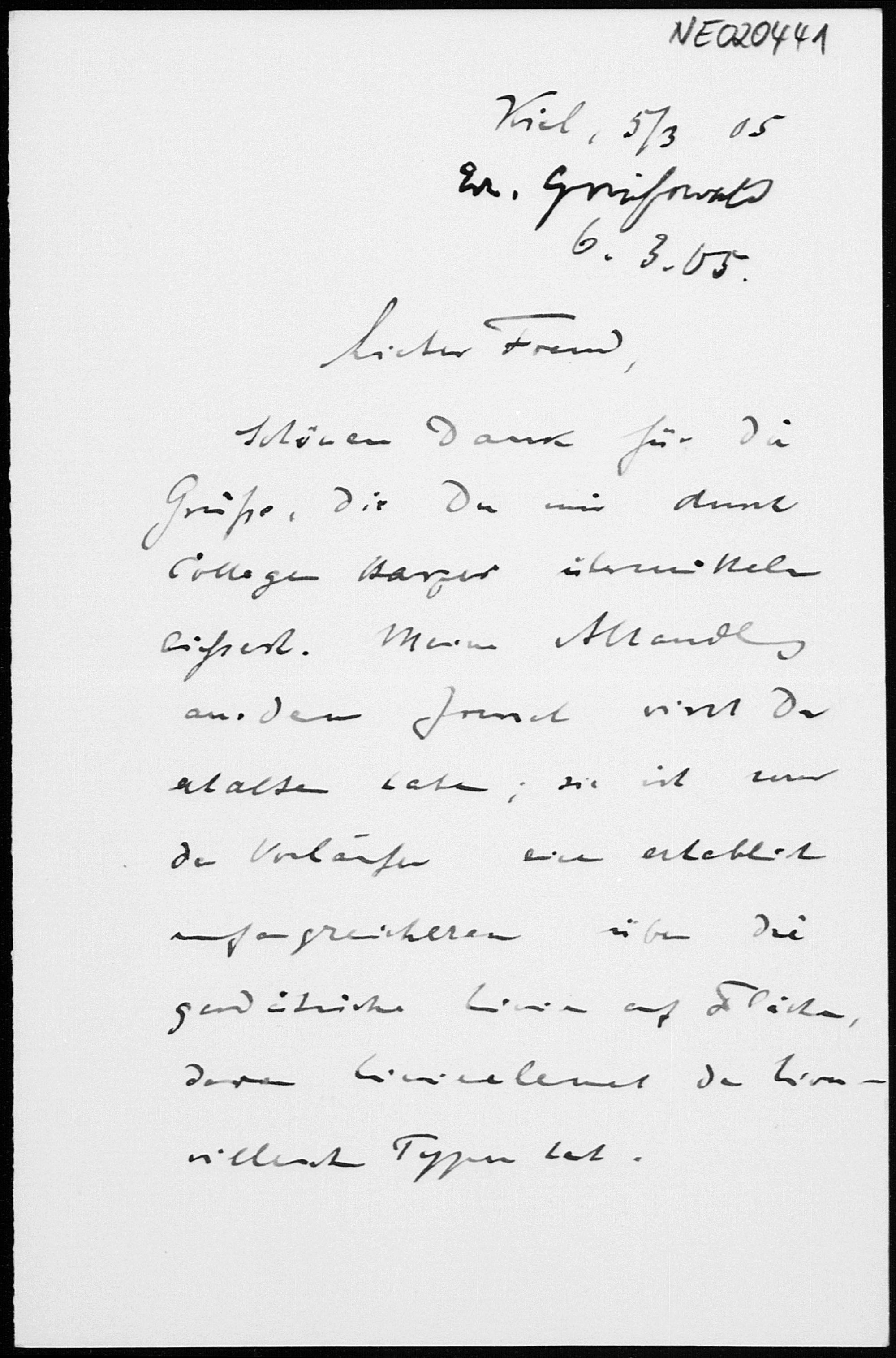 Brief von Paul Stäckel an Friedrich Engel vom 5.3.1905