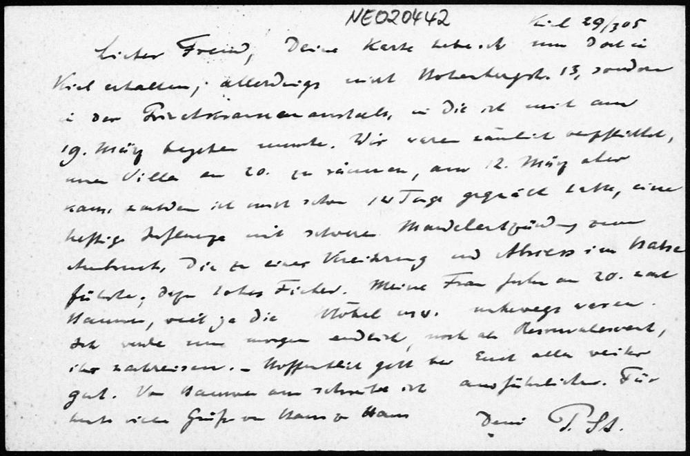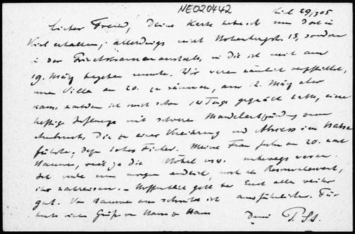 Postkarte von Paul Stäckel an Friedrich Engel vom 29.3.1905