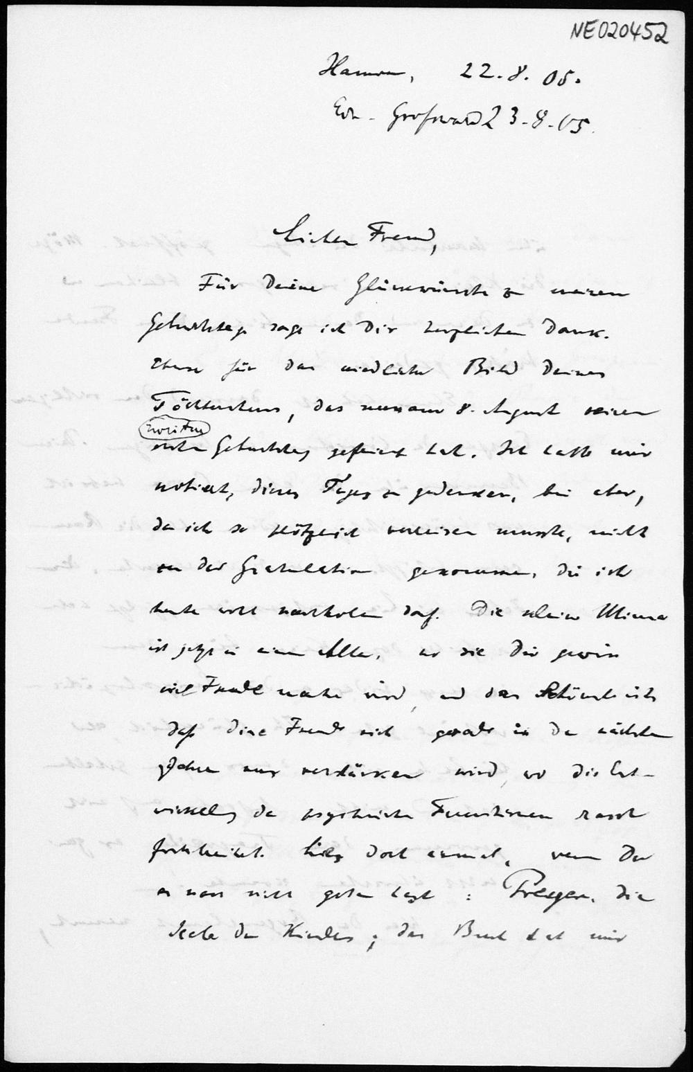 Brief von Paul Stäckel an Friedrich Engel vom 22.8.1905