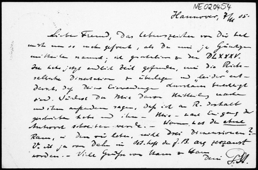 Postkarte von Paul Stäckel an Friedrich Engel vom 7.11.1905
