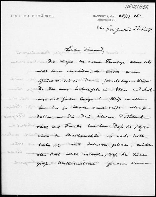 Brief von Paul Stäckel an Friedrich Engel vom 25.12.1905