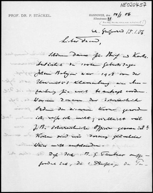 Brief von Paul Stäckel an Friedrich Engel vom 14.1.1906