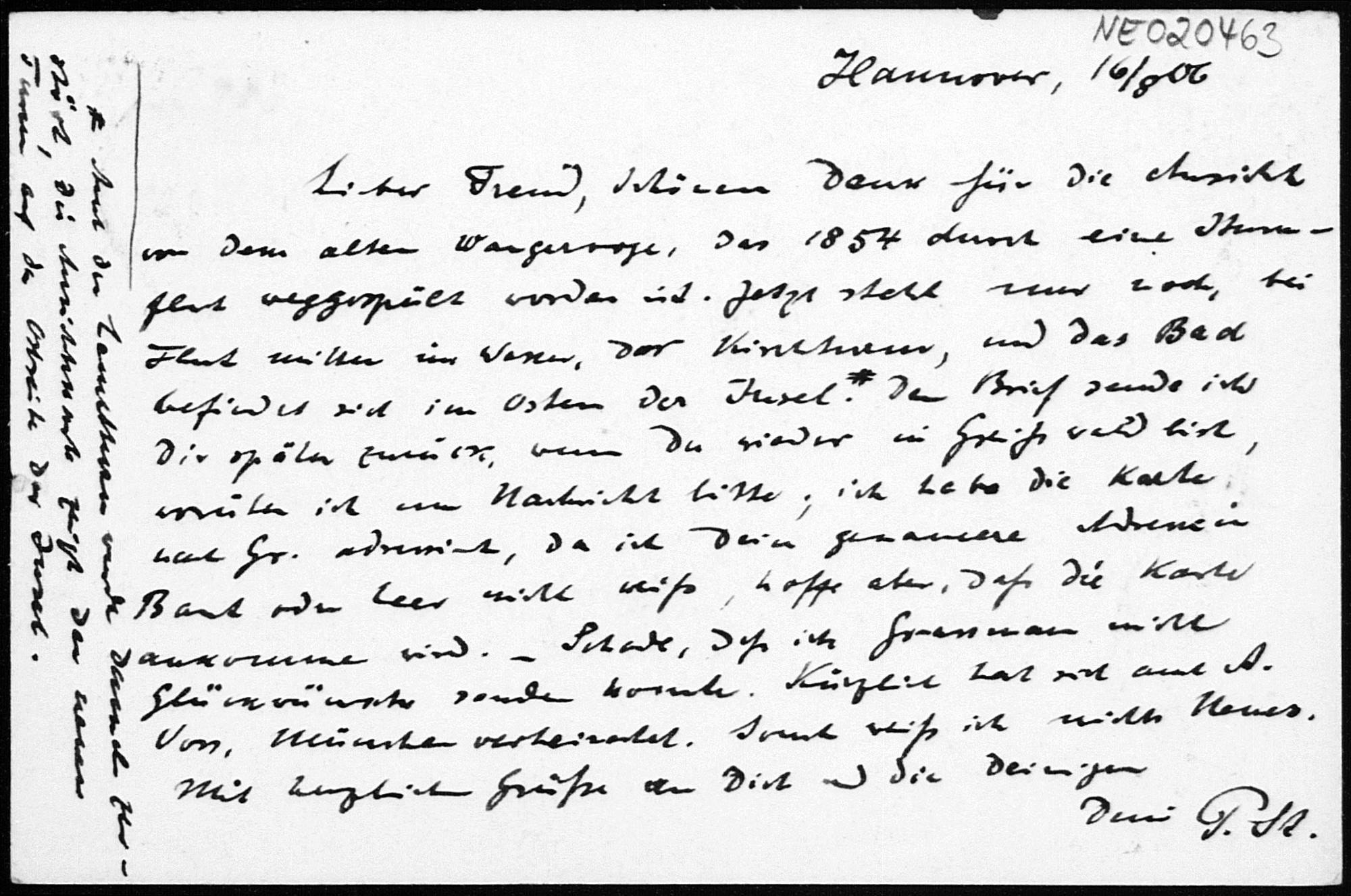 Postkarte von Paul Stäckel an Friedrich Engel vom 16.8.1906