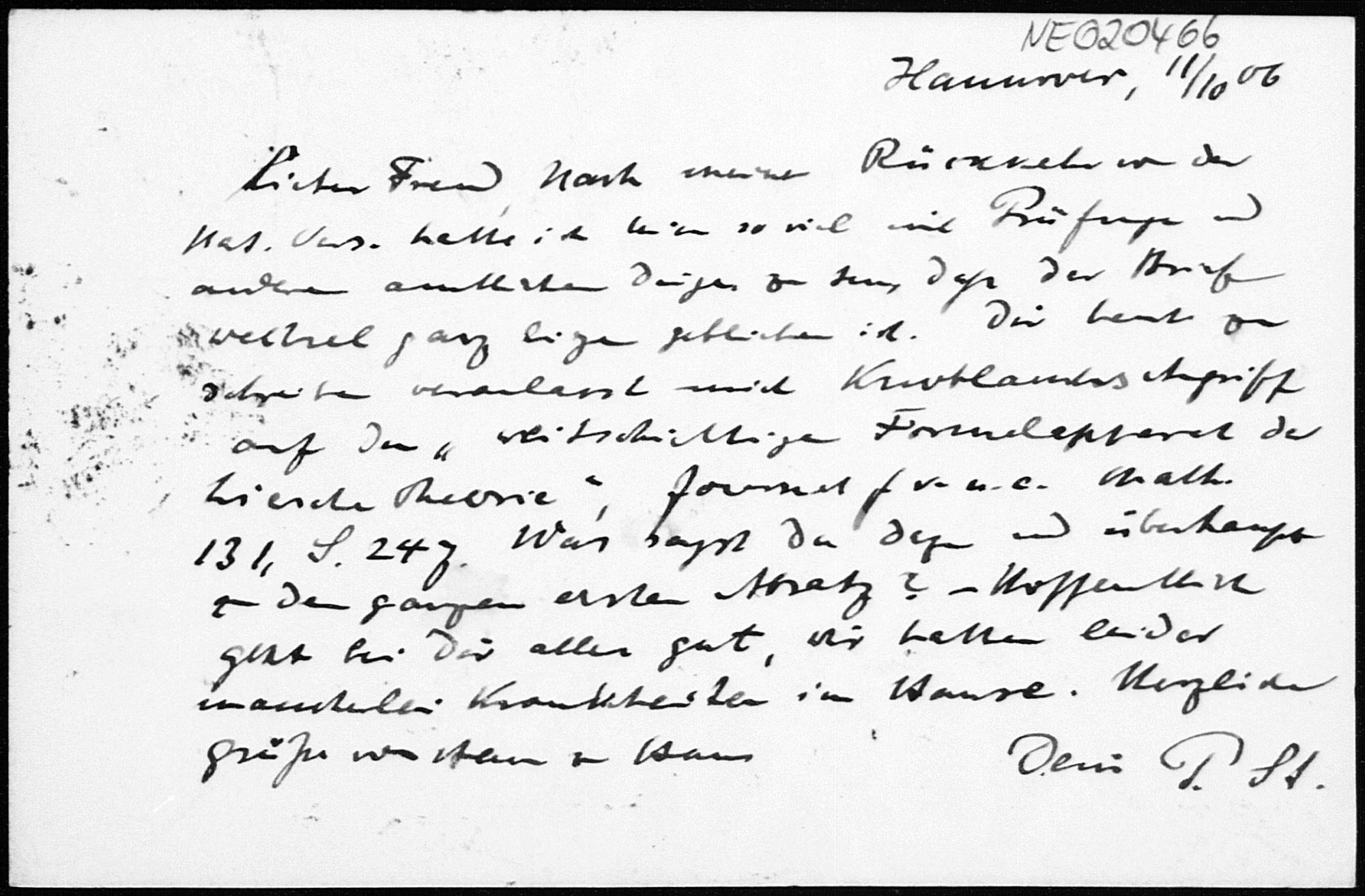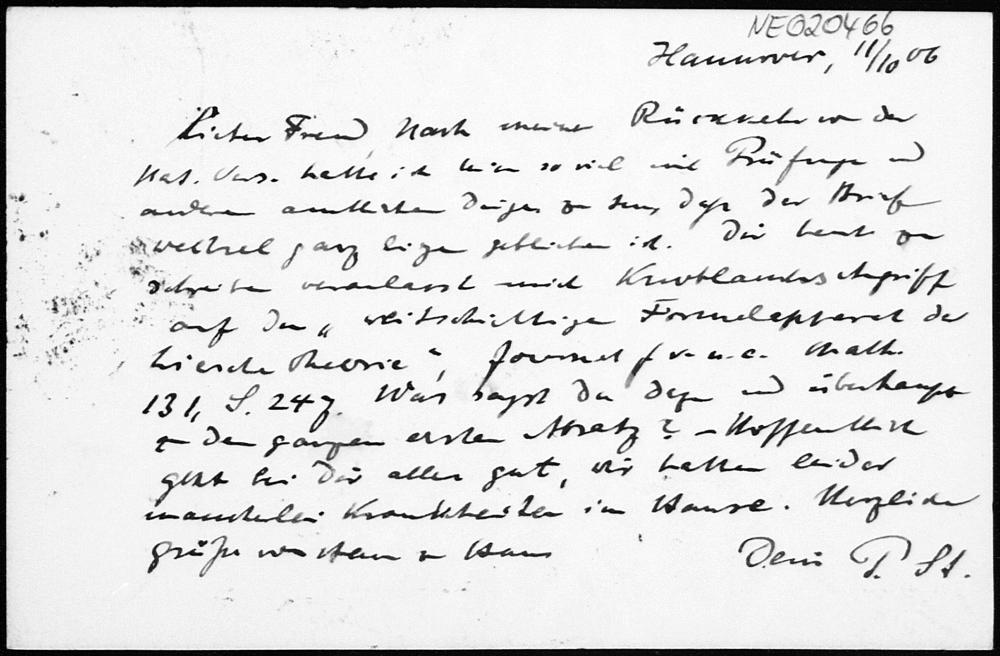 Postkarte von Paul Stäckel an Friedrich Engel vom 11.10.1906