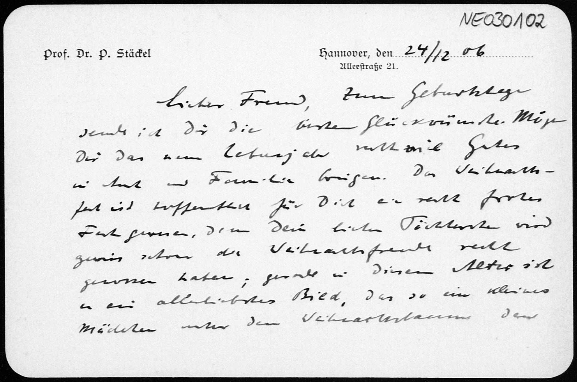 Briefkarte von Paul Stäckel an Friedrich Engel vom 24.12.1906
