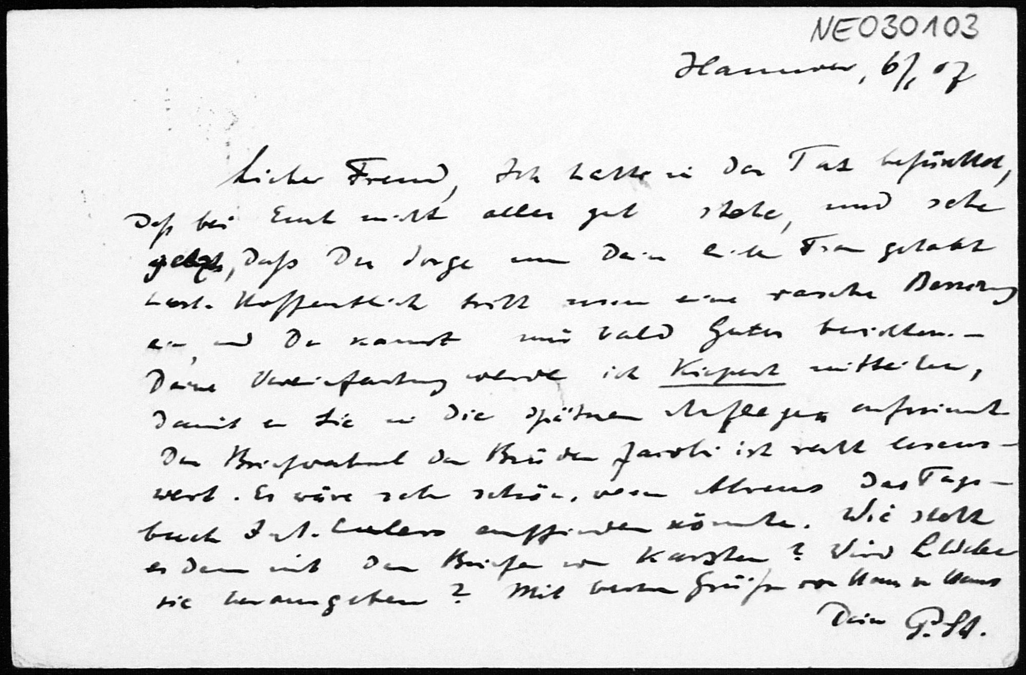 Postkarte von Paul Stäckel an Friedrich Engel vom 6.1.1907