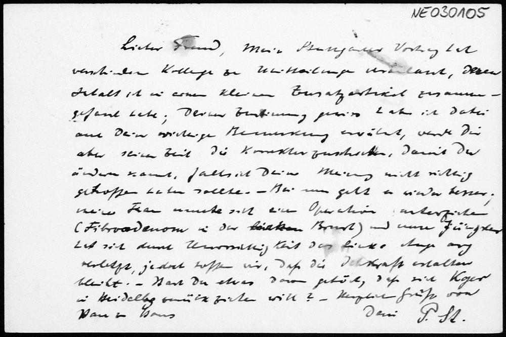 Postkarte von Paul Stäckel an Friedrich Engel vom 16.2.1907