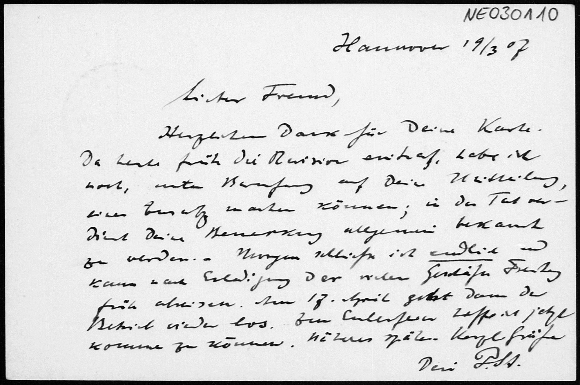 Postkarte von Paul Stäckel an Friedrich Engel vom 19.3.1907