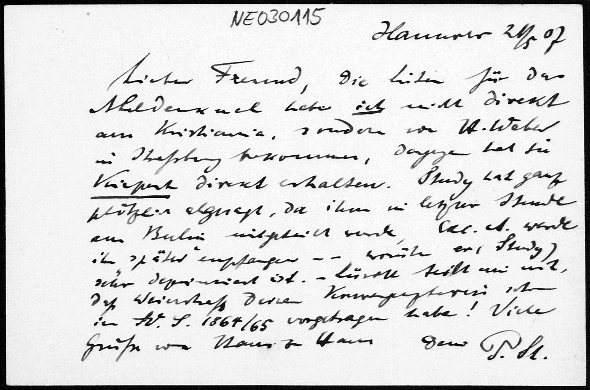 Postkarte von Paul Stäckel an Friedrich Engel vom 21.5.1907