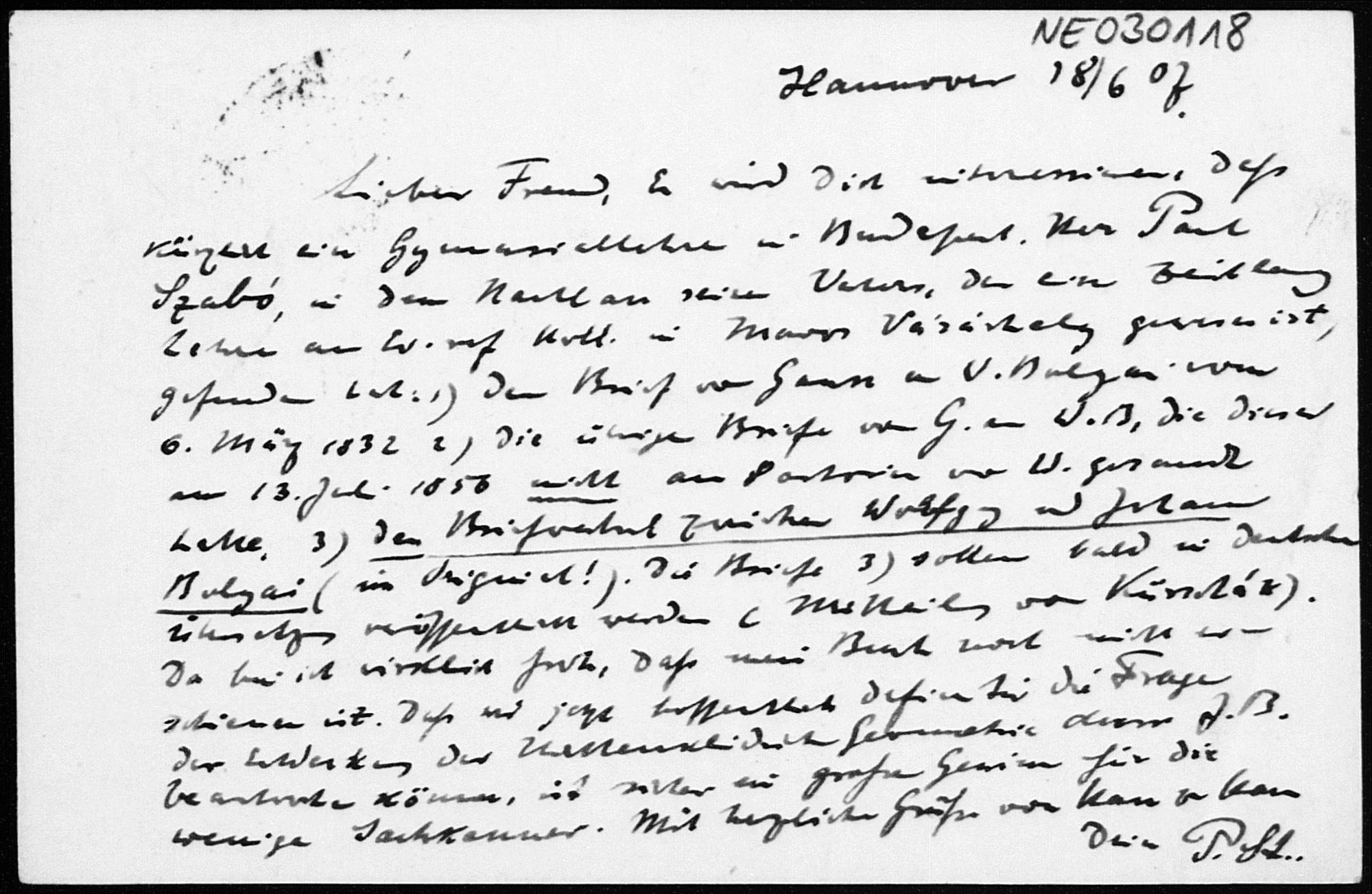 Postkarte von Paul Stäckel an Friedrich Engel vom 18.6.1907